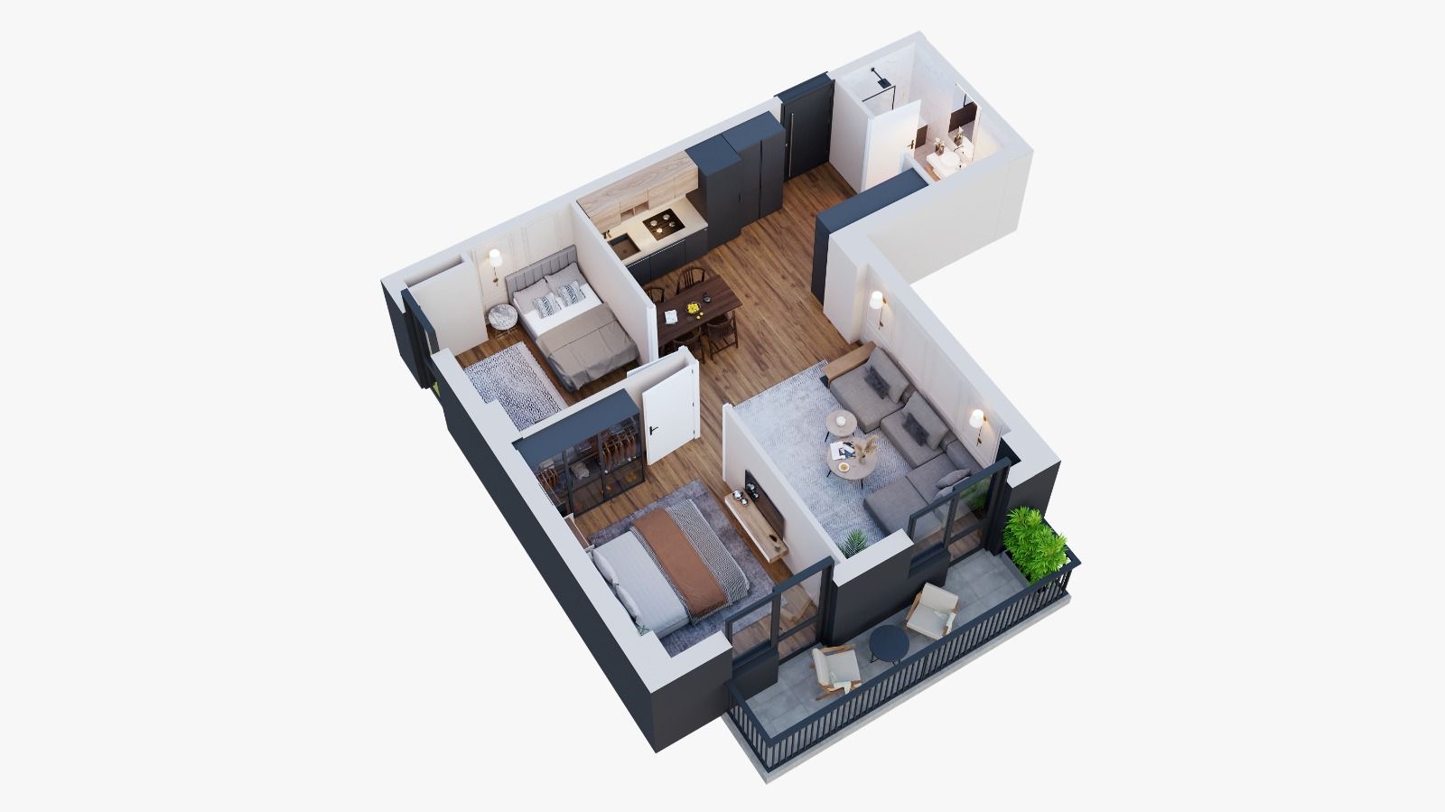 - გარე პერიმეტრზე ჩასმულ, მაღალი ხარისხის მეტალო-პლასმასის კარ-ფანჯარას;